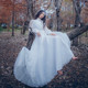 春秋复古文艺修身刺绣长袖连衣裙立领高腰显瘦度假大摆长裙仙女裙