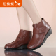 红蜻蜓女鞋 秋冬正品真皮女士短靴皮鞋 坡跟圆头低帮鞋休闲妈妈鞋