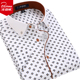 北极绒男装衬衫长袖韩版修身男士衬衣秋季商务休闲潮流印花白寸衫