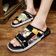 夏季小怪兽拖鞋皮面一字拖情侣时尚沙滩鞋大码拖鞋黄色眼睛拖鞋男