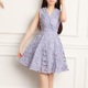 2017夏季新款 韩版淑女V领收腰大摆水溶蕾丝气质无袖背心连衣裙子