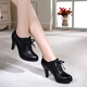 2016前系带防水台皮鞋女鞋春款单鞋通勤真皮高跟粗跟深口低帮鞋子