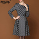 水墨青华2015秋冬季新款A字裙长袖大摆文艺波点连衣裙