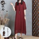 欧琪玲秋冬新款文艺复古棉麻女大码中长款春秋长袖亚麻打底连衣裙