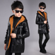 童装男童冬装外套2016新款中大童儿童男孩加绒加厚风衣中长款皮衣
