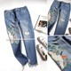 2017春季新款超有型民族风精致花朵刺绣磨破软料牛仔裤女