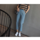 古老赤耳工艺 版型正!时髦浅蓝水洗磨砂中腰小直筒牛仔长裤