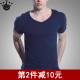 夏季纯色半袖男装紧身打底衫无痕男士短袖t恤v领修身体恤潮 2件装