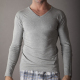 男士莫代尔V领紧身秋衣纯棉薄款修身保暖内衣上衣单件打底衫长袖