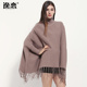 2016秋冬款高领套头女士流苏斗篷纯色仿羊绒披肩蝙蝠袖针织衫外套