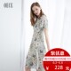 Oece夏装新款女装 复古碎花连衣裙夏女荷叶袖印花雪纺裙高腰显瘦