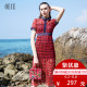 OECE女装 复古宫廷刺绣名媛大红色连衣裙气质春秋装
