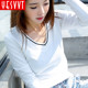2017春装新款胖mm大码长袖t恤女v领纯色修身上衣纯棉白色打底衫
