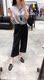 好穿到爆 弹力面料 花纹裤脚休闲分阔腿裤女