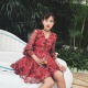 2017新款复古小碎花印花雪纺连衣裙V领中袖收腰中裙裙子女装夏装