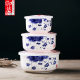 御磬陶瓷保鲜碗饭盒三件套 微波炉冰箱便当盒密封保鲜泡面碗带盖