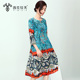 2017夏季新款时尚民族风七分袖碎花大码宽松文艺名媛真丝连衣裙女