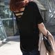 现货/韩国东大门代购 2017夏季新款女装圆领宽松漏后背短袖T恤