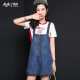 七格格2017春季高腰显瘦短裤单排扣门襟水洗减龄背带牛仔裤女