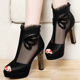 意大利范品牌女鞋新款女鞋网纱水钻鱼嘴高跟时尚凉鞋粗跟休闲单鞋