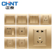 正泰开关插座套餐86型钢架香槟金色五孔插座电源面板10只装二三插