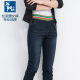 小鹿松紧腰牛仔裤女秋款长裤全棉弹力小脚裤铅笔修身韩版大码胖mm
