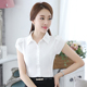 杉魅夏季雪纺短袖白衬衫OL职业百搭修身打底衬衣工作服女正装