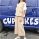 夏装韩国原宿宽松字母印花短袖t恤+bf风休闲运动破洞短裤女套装潮