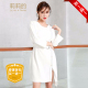 七分袖连衣裙2017春季新款女装气质不对称收腰a型短裙春秋连衣裙