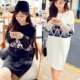 大码女装200斤胖mm秋装中长款显瘦连衣裙胖妹妹蕾丝打底衫宽松t恤