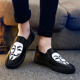 2017春季男士帆布鞋一脚蹬懒人鞋不系带3D印花黑客死神火手乐福鞋