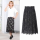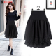 春夏新款韩版高腰百褶蕾丝裙黑色网纱半身裙秋冬大摆裙显瘦中长裙