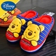 正品迪士尼棉拖鞋居家防滑保暖卡通包跟棉鞋童小熊维尼儿童棉拖鞋