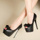 韩版春夏超高跟单鞋14CM蝴蝶结公主女高跟鞋夜店细跟防水台鱼嘴鞋