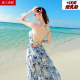 雪纺V领碎花挂脖波西米亚大摆长裙海边度假沙滩裙露背显瘦连衣裙
