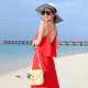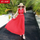 夏大红雪纺荷叶边海边沙滩裙露背波西米亚长裙吊带显瘦度假连衣裙