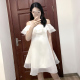 夏女欧根纱一字领露背荷叶边连衣裙波西米亚海边度假沙滩裙短裙仙