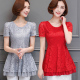 中老年妈妈女夏装女上衣半袖蕾丝拼接镂空显瘦百搭雪纺短袖打底衫