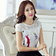 2016夏季雪纺衫短袖韩版数码印花白色雪纺上衣甜美宽松夏装女 潮