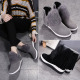 萱凡冬季新款超高跟厚底松糕靴女欧美简约通勤内增高拉链套筒短靴