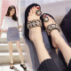 萱凡高跟鞋女夏2017韩版百搭学生厚底松糕鞋一字带罗马鞋坡跟凉鞋