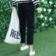 春秋新品韩版高腰黑色阔脚裤毛边显瘦九分宽松牛仔裤女白色直筒裤