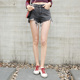2017夏新款高腰黑灰色短裤女不规则毛边微宽松牛仔短裤女沙滩热裤