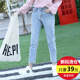 春新款韩版紧身黑色破洞九分裤女修身显瘦韩国破洞小脚牛仔铅笔裤