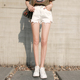 2017春夏新款韩版高腰不规则毛边白色牛仔短裤女学生个性热裤子女