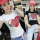 2017夏装潮款女装亮片爱心短袖t恤衫女式显瘦修身体恤上衣打底衫