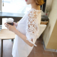 2017春装韩版大码女装宽松显瘦衬衫中长款蕾丝拼接镂空打底衫上衣