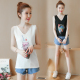 夏季女装新款圆领图案背心吊带衫修身显瘦无袖T恤打底衫网纱上衣