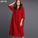 2017春夏款 红色蚕丝亚麻廓形连衣裙显瘦 中袖大码宽松中长款衬衫