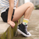 日系新复古刺绣运动拉毛袜 全棉条纹双杠中筒袜 男女袜情侣袜子潮